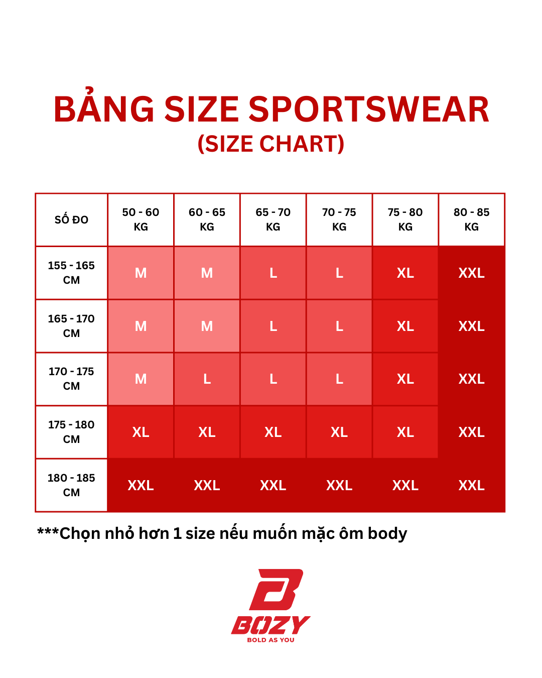 ✅ Bảng size chart mang tính chất tham khảo.