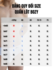 Quần lót của Bozy có chất liệu Cotton và spandex giúp quần co giãn thoải mái, thấm hút mồ hôi tốt.